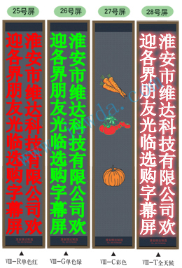 VII型系列:高2.24米(256點(diǎn)),寬0.26米(24點(diǎn)),單行顯示,可折疊,單行顯示常用字?jǐn)?shù)不超過14字。 |
